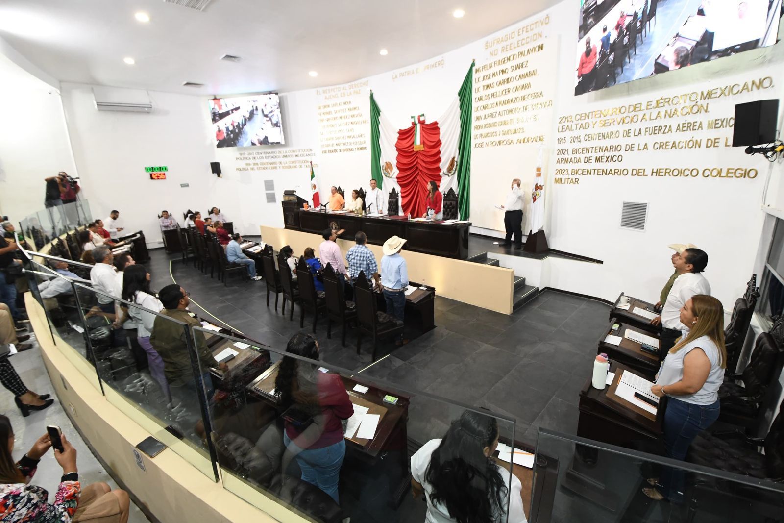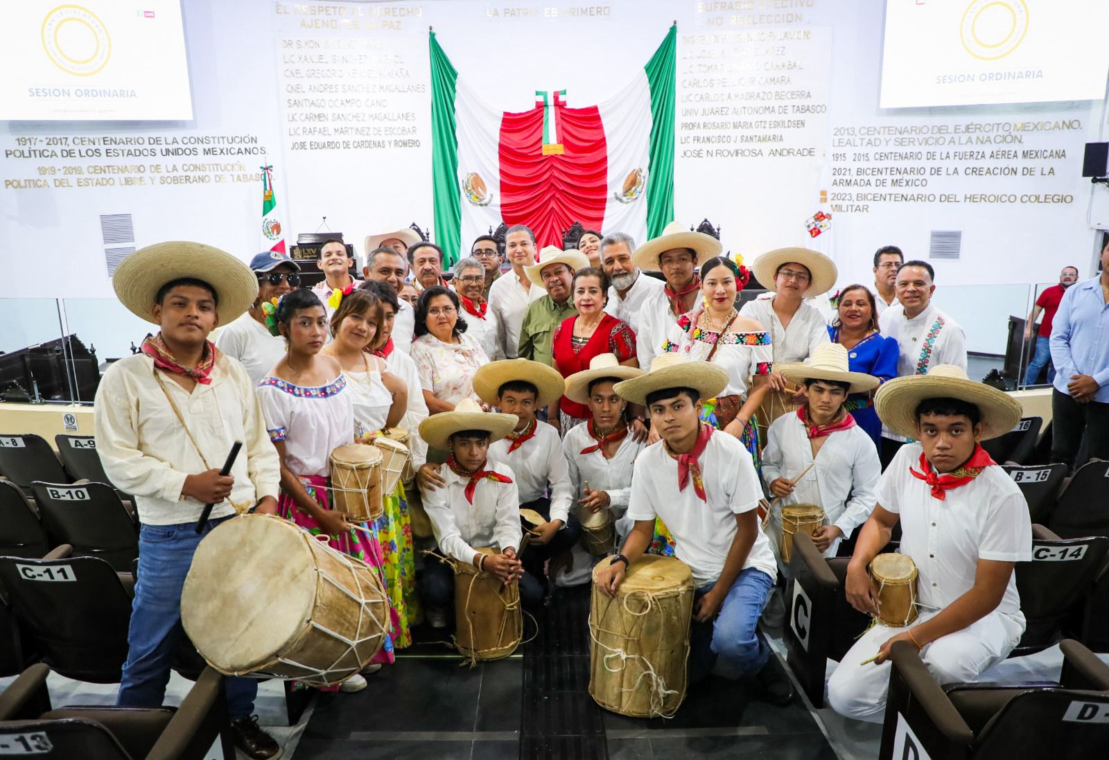 Al celebrarse el primer aniversario del “Día del Tamborilero Tabasqueño”, y en aras de reconocer y celebrar la importancia de la música de tamborileros como una tradición cultural en la entidad, el Congreso del Estado de Tabasco se engalanó con la presencia de grupos de jóvenes tamborileros que acudieron al Recinto Legislativo para deleitar a las y los presentes con melodías típicas tabasqueñas.