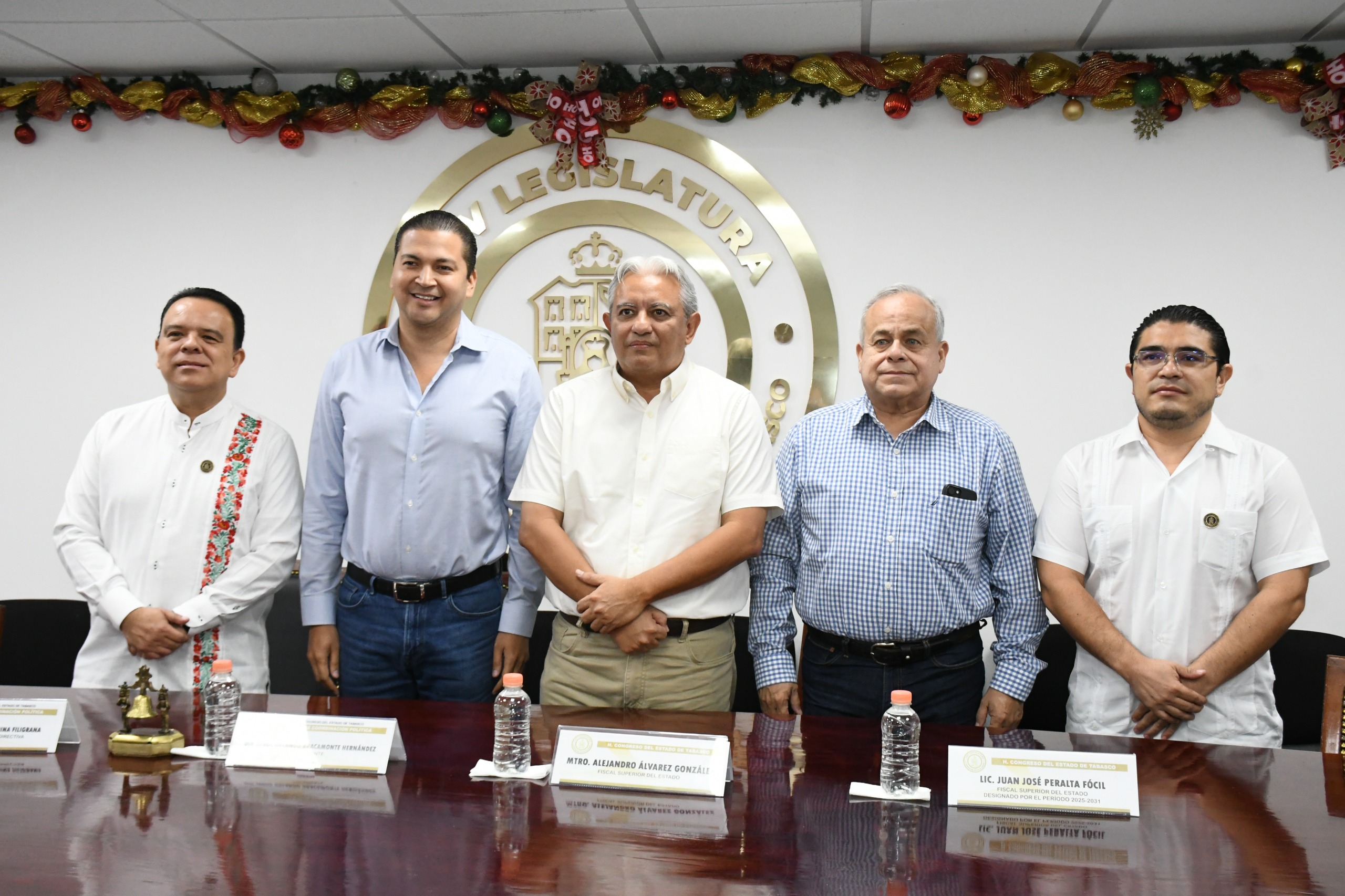 Con la finalidad de acordar el proceso en qué se llevará a cabo la entrega-recepción de la titularidad del Órgano Superior de Fiscalización (OSFE) este día sostuvieron una reunión de trabajo el presidente de la Junta de Coordinación Política de la LXV Legislatura, Jorge Orlando Bracamonte Hernández; el presidente de la mesa directiva, Marcos Rosendo Medina Filigrana; el Fiscal Superior del Estado, Alejandro Álvarez González, y el Fiscal designado para el periodo 2025-2031, Juan José Peralta Fócil.