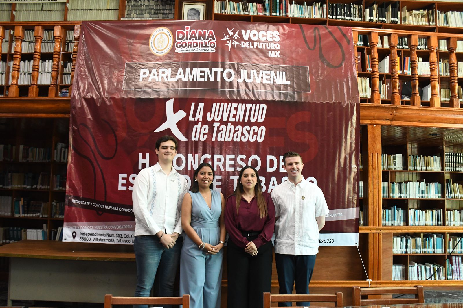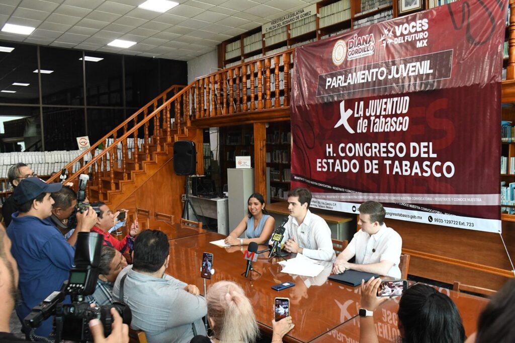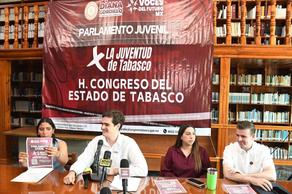 Con el propósito de escuchar e impulsar las ideas de las y los jóvenes en la entidad, la diputada Diana Eugenia Hernández Gordillo acompañada de Emilio Álvarez Mikel, fundador de “Voces del Futuro MX A.C.”, presentaron la convocatoria para participar en el Primer Parlamento Juvenil “Por la Juventud de Tabasco” que se efectuará el 22 de mayo del presente año.