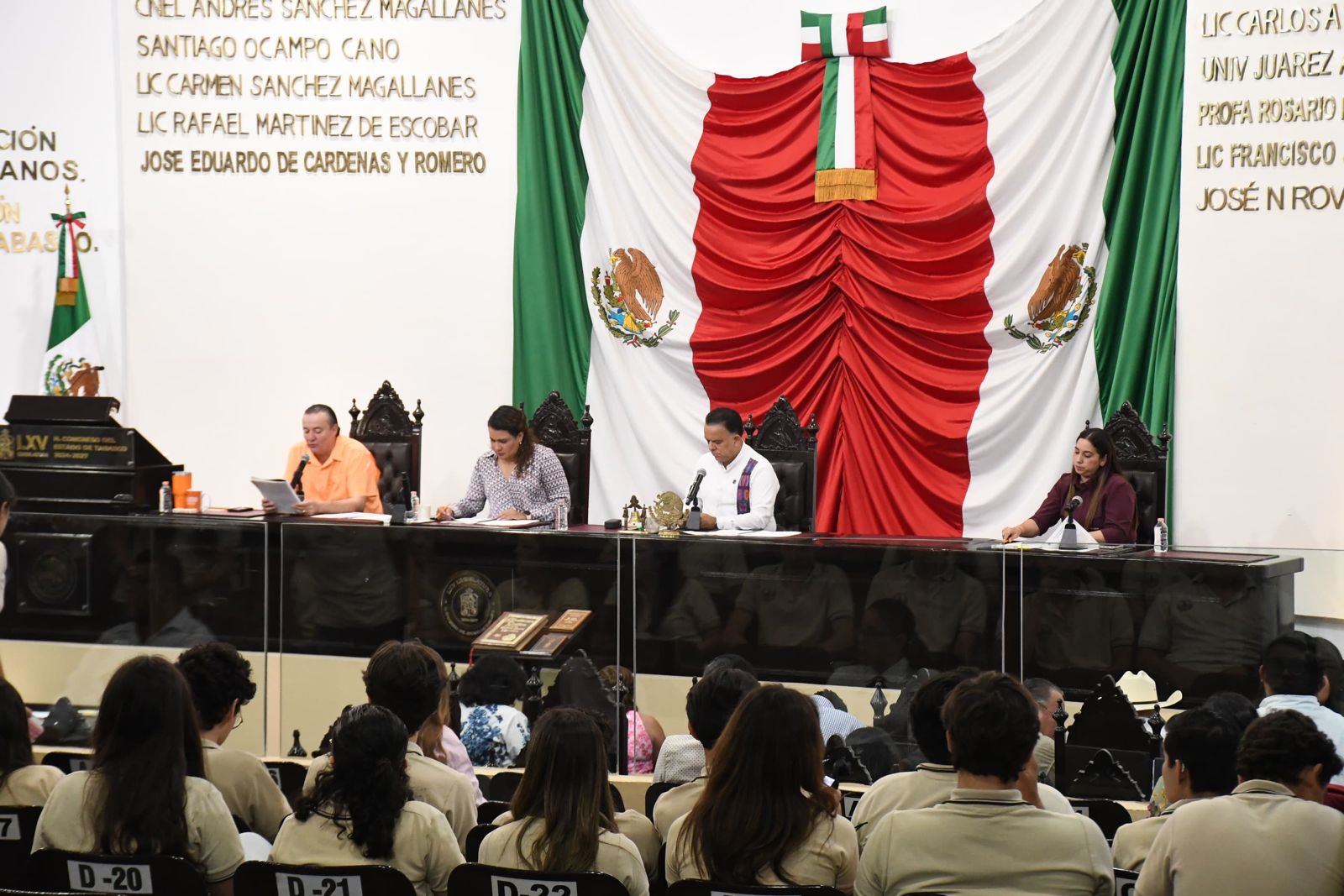 La sesión de este día fue presenciada por estudiantes de la Universidad “Más Educación y Enseñanza” (UMAEE), y por alumnos de preparatoria del Colegio Arjí, quienes, en apego a la materia de Política Global del Programa de Bachillerato Internacional, asistieron al Congreso del Estado de Tabasco a conocer su conformación y funcionamiento.