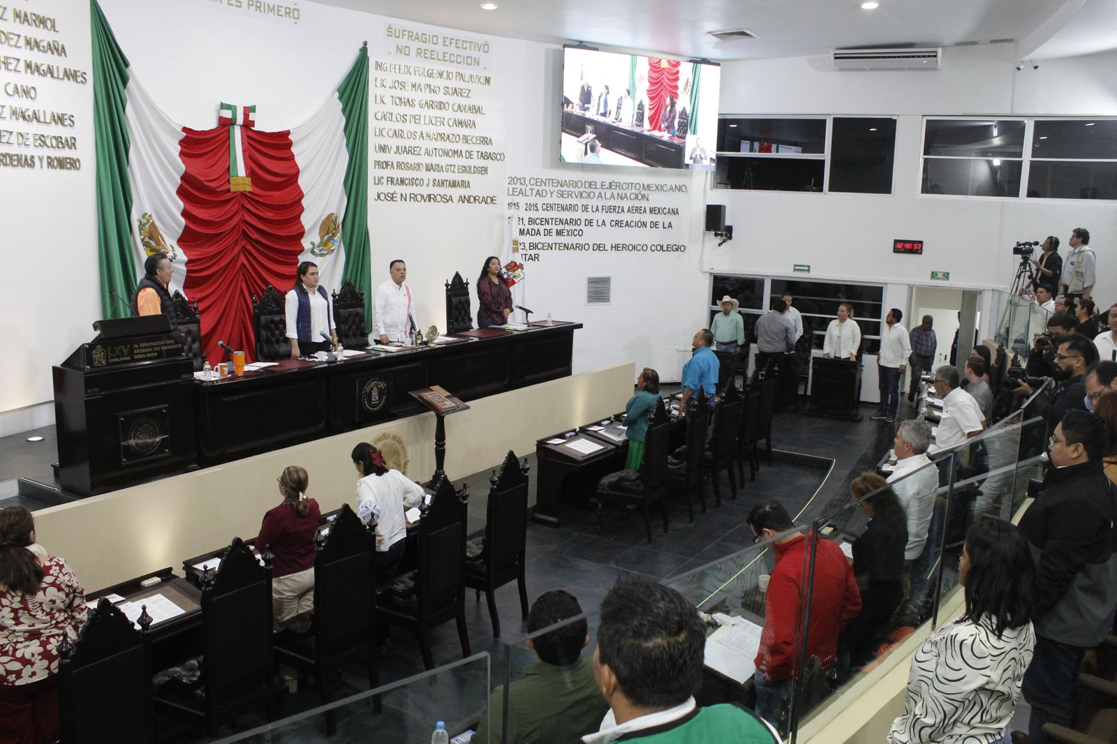 Bracamonte Hernández hizo alusión al trabajo que la LXV Legislatura ha desarrollado en año y medio, así como al acompañamiento de las fracciones parlamentarias que la integran, en el cual subrayó, han antepuesto los intereses de las y los tabasqueños.