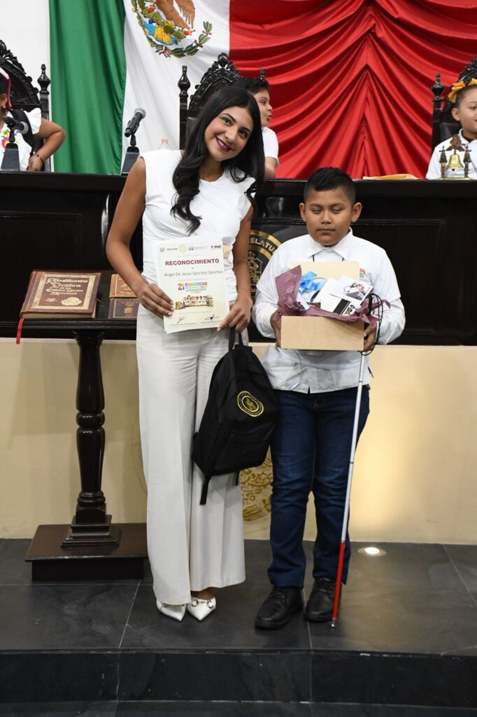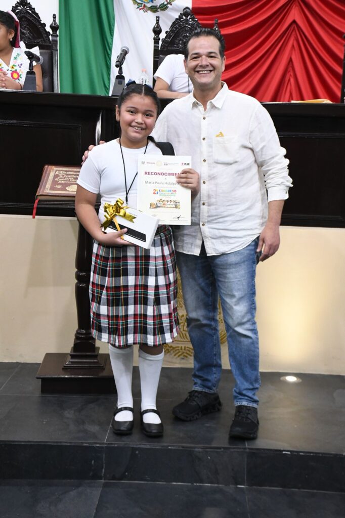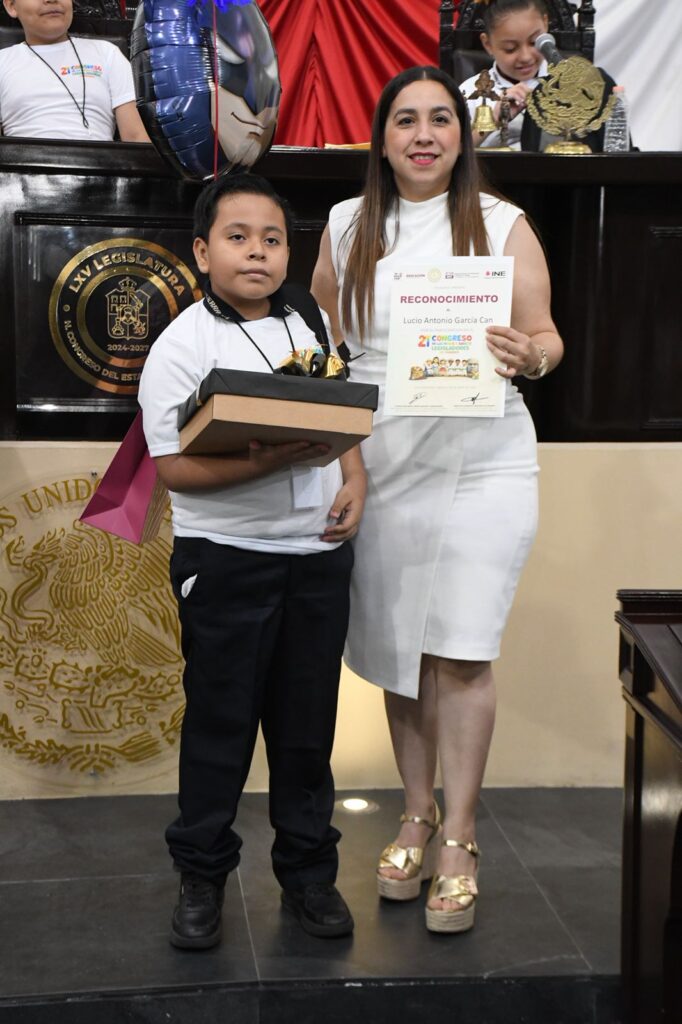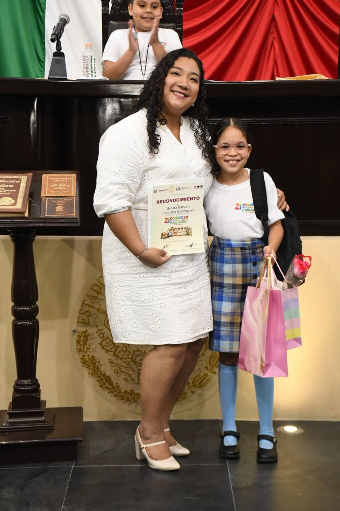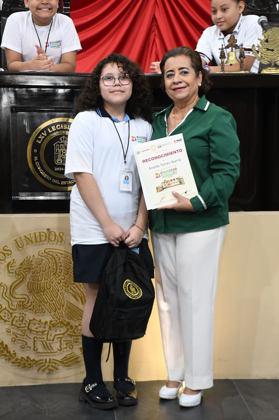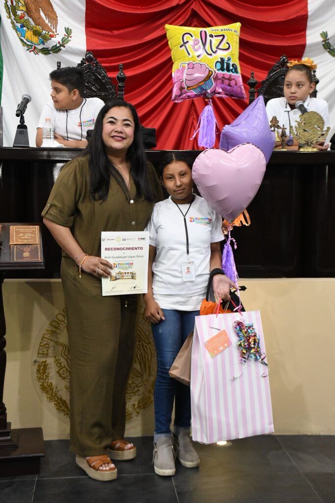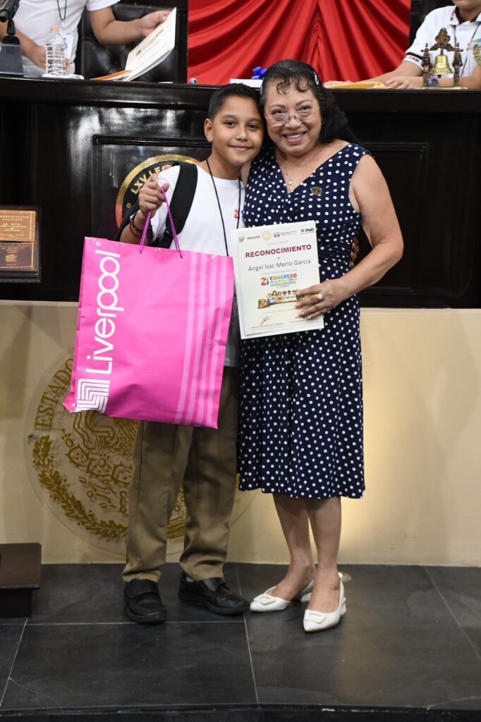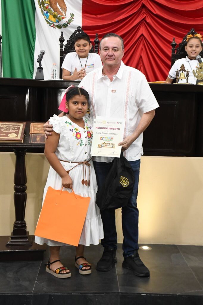 Para concluir la sesión del 21º Congreso de las Niñas y Niños Legisladores de Tabasco, las y los pequeños recibieron reconocimiento por su destaca participación en el Parlamento Infantil, así como obsequios de parte de la LXV Legislatura, de cada uno de sus integrantes y del Secretario de Asuntos Parlamentarios.